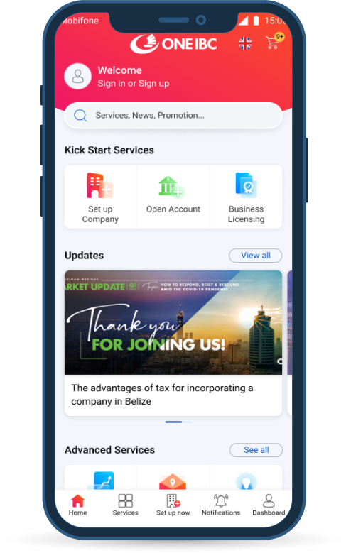 Truy cập toàn bộ thông tin, dịch vụ, nhiều tiện ích khác của One IBC và dễ dàng quản lý doanh nghiệp nước ngoài của bạn một cách nhanh chóng, tiện lợi và an toàn.