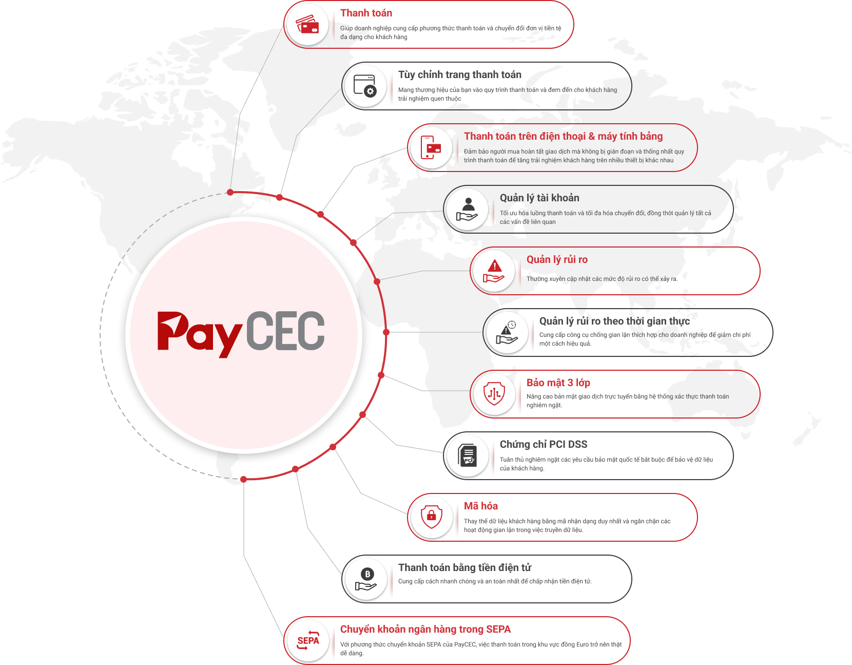 PayCEC là nhà cung cấp dịch vụ thanh toán toàn cầu, với sứ mệnh kết nối người mua và người bán vượt qua các rào cản địa lý một cách thuận tiện nhất bằng công nghệ tiên tiến nhất.