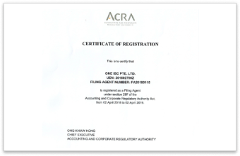 Chứng chỉ Nhà cung cấp Dịch vụ Doanh nghiệp tại Singapore 2019/2021 theo ACRA – One IBC