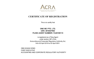 Chứng chỉ Nhà cung cấp Dịch vụ Doanh nghiệp tại Singapore 2021/2023 theo ACRA – One IBC